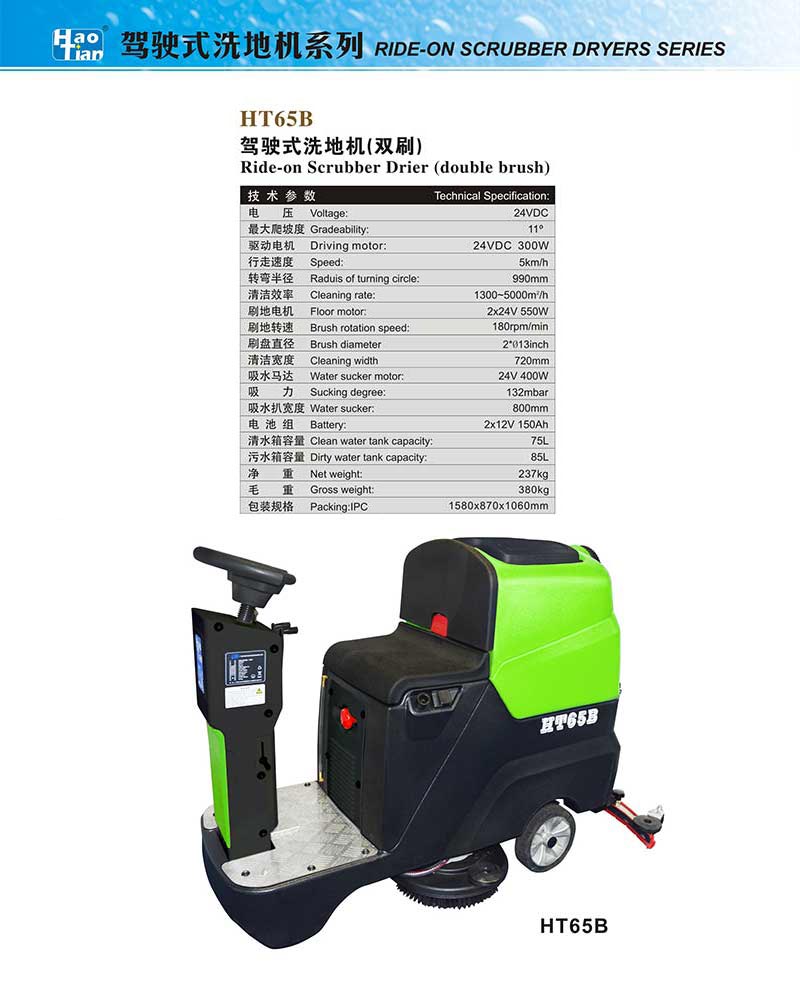 HT65B駕駛式洗地機(雙刷) 主頁>>洗地機>HT65B駕駛式洗地機(雙刷)>
